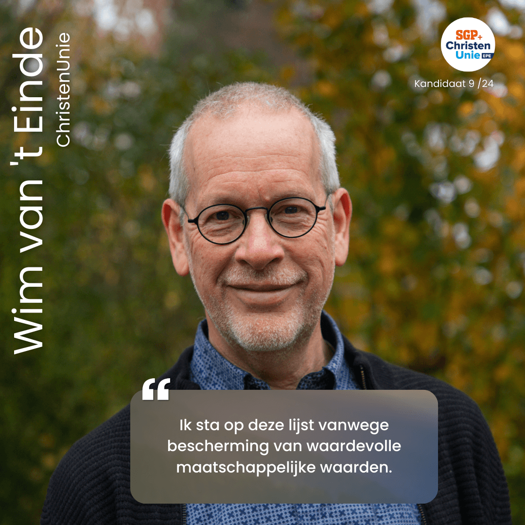Wim van ’t Einde (ChristenUnie) uit Vaassen staat op de lijst vanuit zijn betrokkenheid bij de bescherming van waardevolle maatschappelijke waarden.